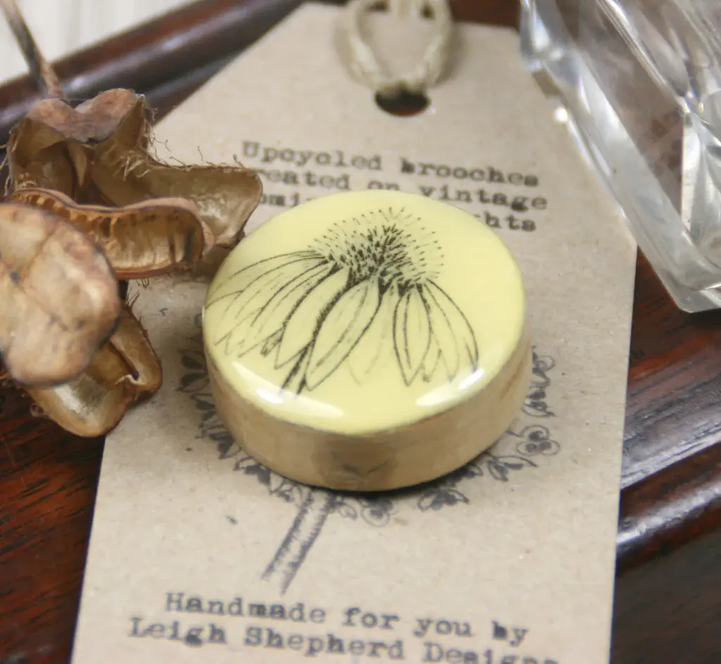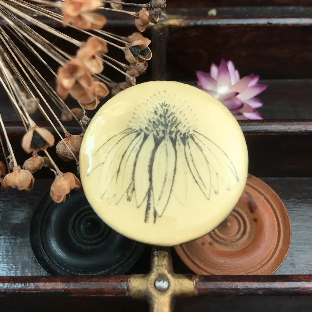 Echinacea Draughts Piece Brooch on card 75