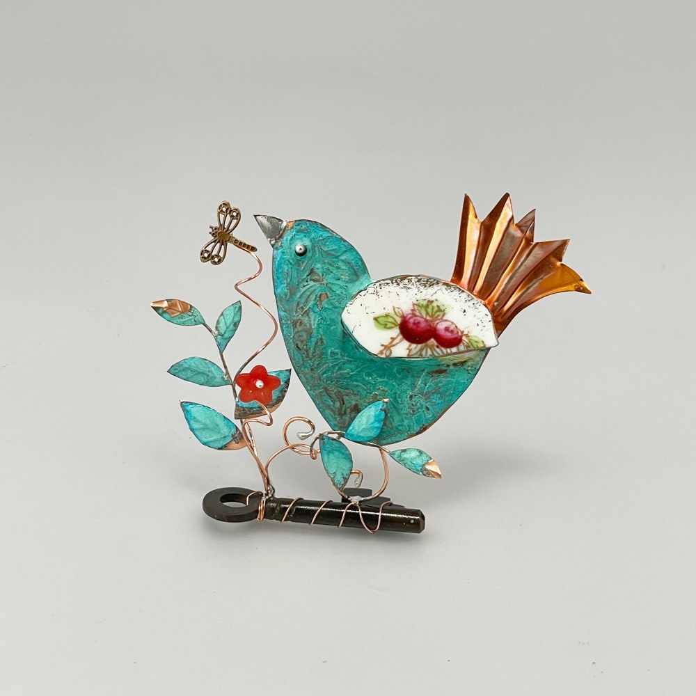 Fantail-Vogel auf einem Schlüssel 042