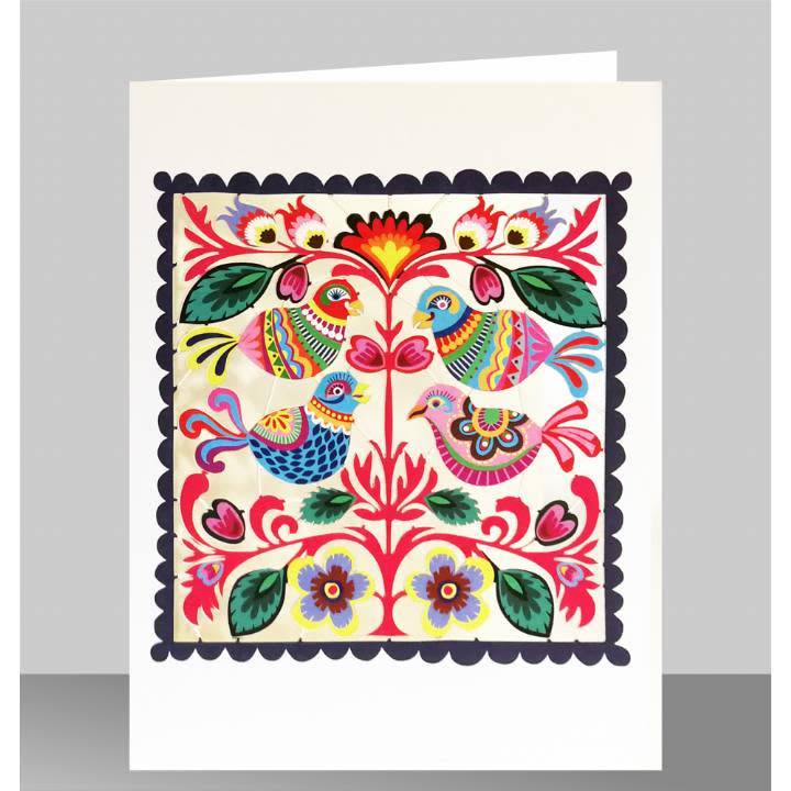 Volkskunst Vögel in einer quadratischen Laser geschnittene Karte