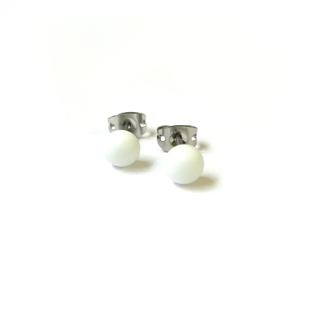 Mini-Ohrstecker aus mattiertem weißem Glas, handgefertigt, 90