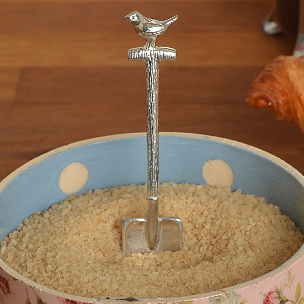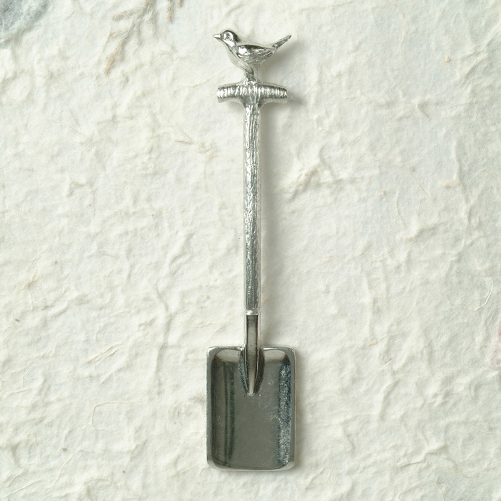 Dieser zarte und schön strukturierte Zinnlöffel hat ein Rotkehlchen auf dem Griff eines Gartenspatens, einer unserer beliebtesten Designs. Er ist das ideale kleine Geschenk für alle, die grüne Finger haben und gerne im Garten arbeiten.