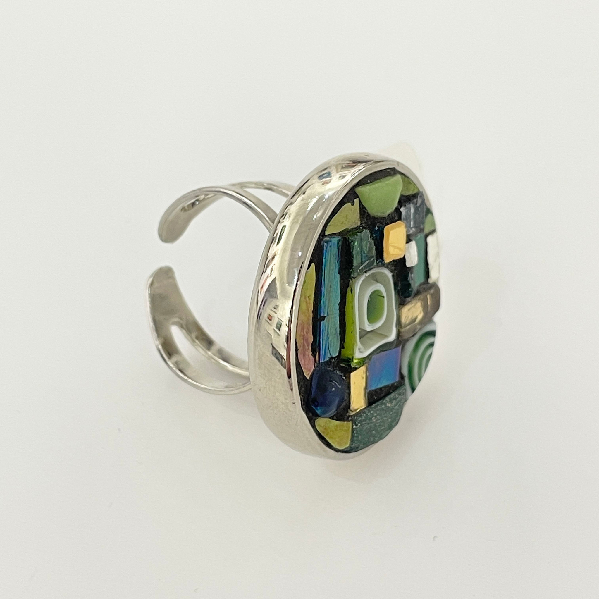 Green Byzantine Mosaic Round Ring 50
