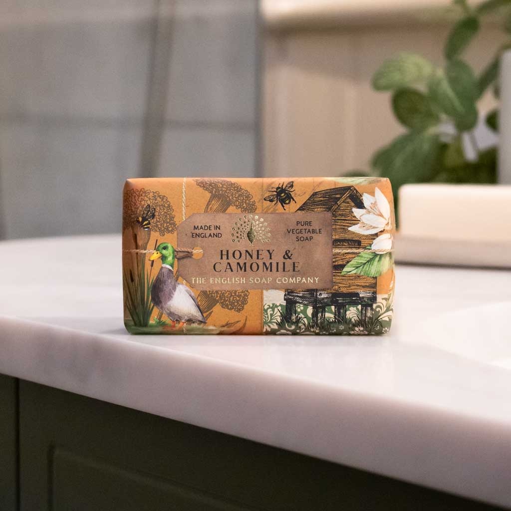 Verwöhnen Sie sich mit dieser Jubiläumsseife mit Honig und Kamille. Großzügig duftend und meisterhaft aus reinen Pflanzenölen hergestellt und mit Sheabutter angereichert, erzeugt diese vegane Seife einen reichhaltigen, seidigen Schaum, der Ihre Haut pflegt und mit Duft umhüllt. Präsentiert in einer vollständig recycelbaren Verpackung ohne Plastikmüll und verziert mit charmanten Illustrationen, sind unsere umweltfreundlichen Seifen das perfekte Geschenk oder eine wohltuende Belohnung für Sie selbst.