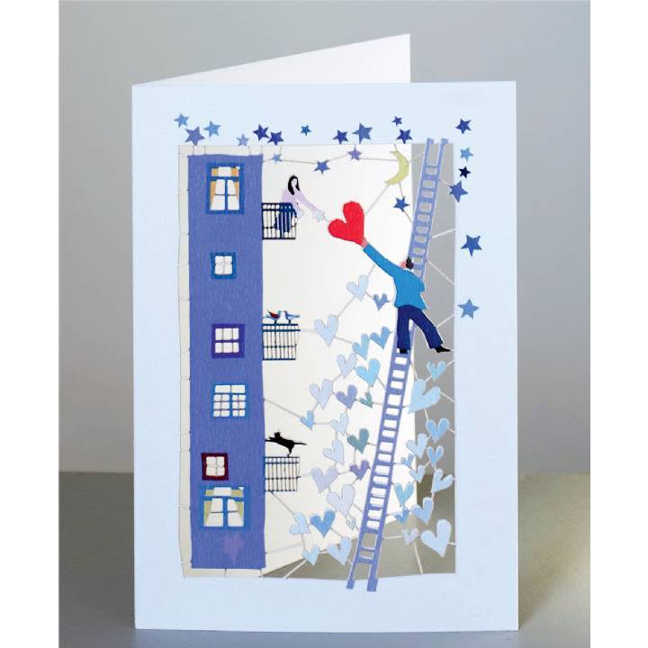 Mann mit Herz eine Leiter Laser geschnittene Karte