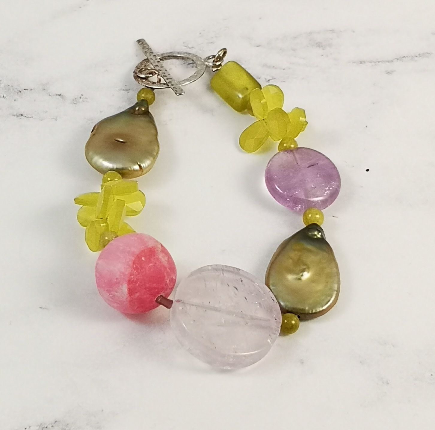 Olive, Pink, pearl bracelet