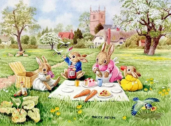 Kaninchen beim Picknick – Karte von Tracey Helps