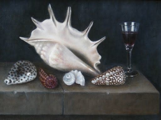 Muscheln und Glas auf Steinleiste 030