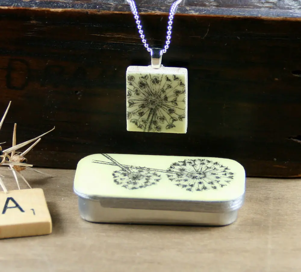 Allium Scrabble I Tile Pendant and Tiny Tin 91