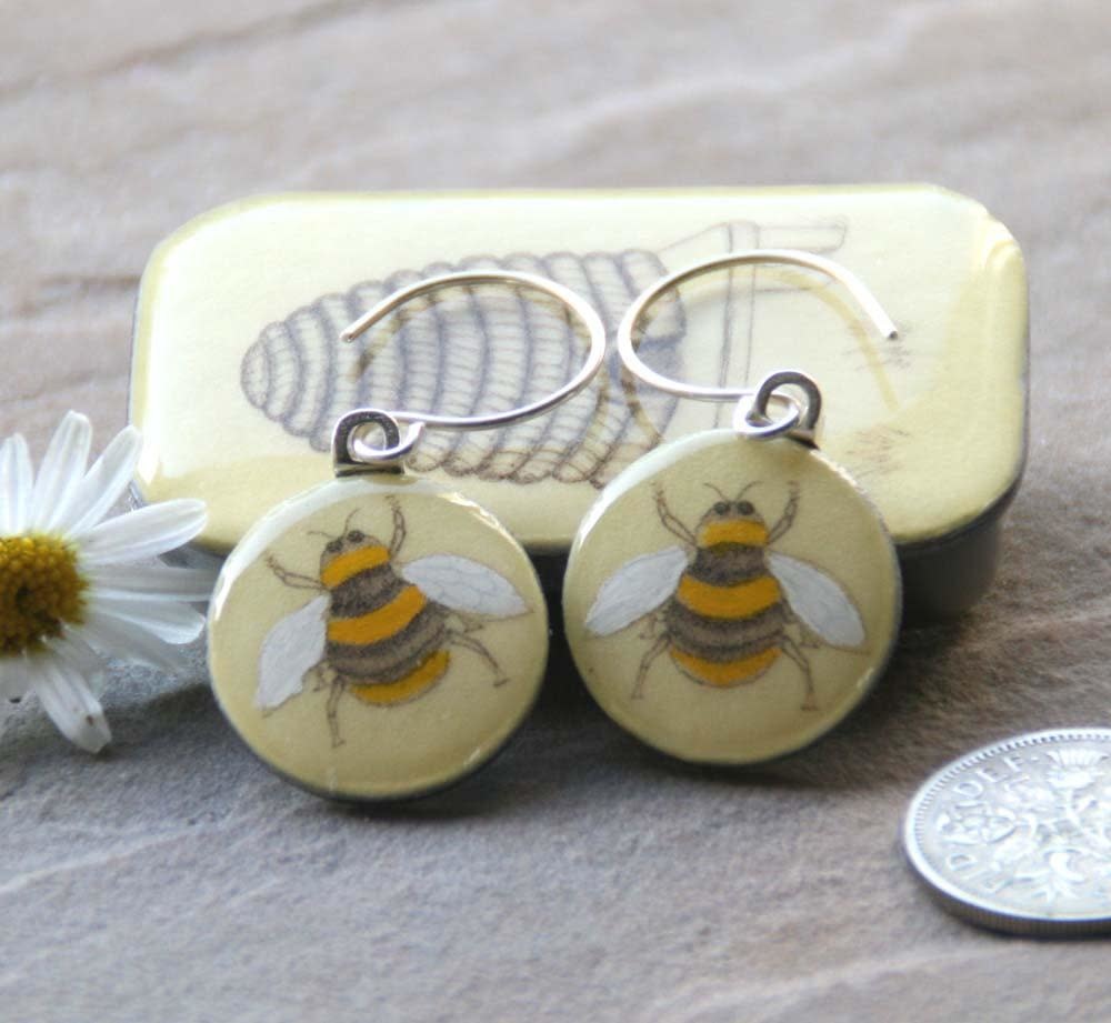 Bee sixpence earrings in Tiny Tin 44