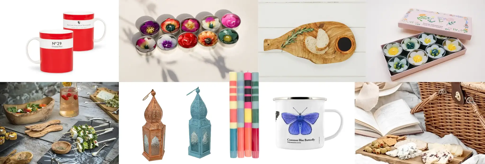 As dusk settles, set the mood with sophisticated striped candles by The British Colour Standard and ornate lanterns by New Overseas Traders. For a magical glow, add Hana Blossom’s tiny floral tealights or sculptural candle holders from Quirky Metals. Ward off the evening chill with soft, stylish silk and cotton scarves by Lua, who also offer charming mini rucksacks and crossbody purses. Shared Earth’s versatile blankets, originally designed as table throws, also work perfectly as cozy wraps. Capture the moment or plan your next picnic in a beautifully bound journal by Paperblanks or Flame Tree Publishing. Budding naturalists will love pressing blooms in a pocket-sized flower press by Wald—a perfect way to remember your alfresco adventures.