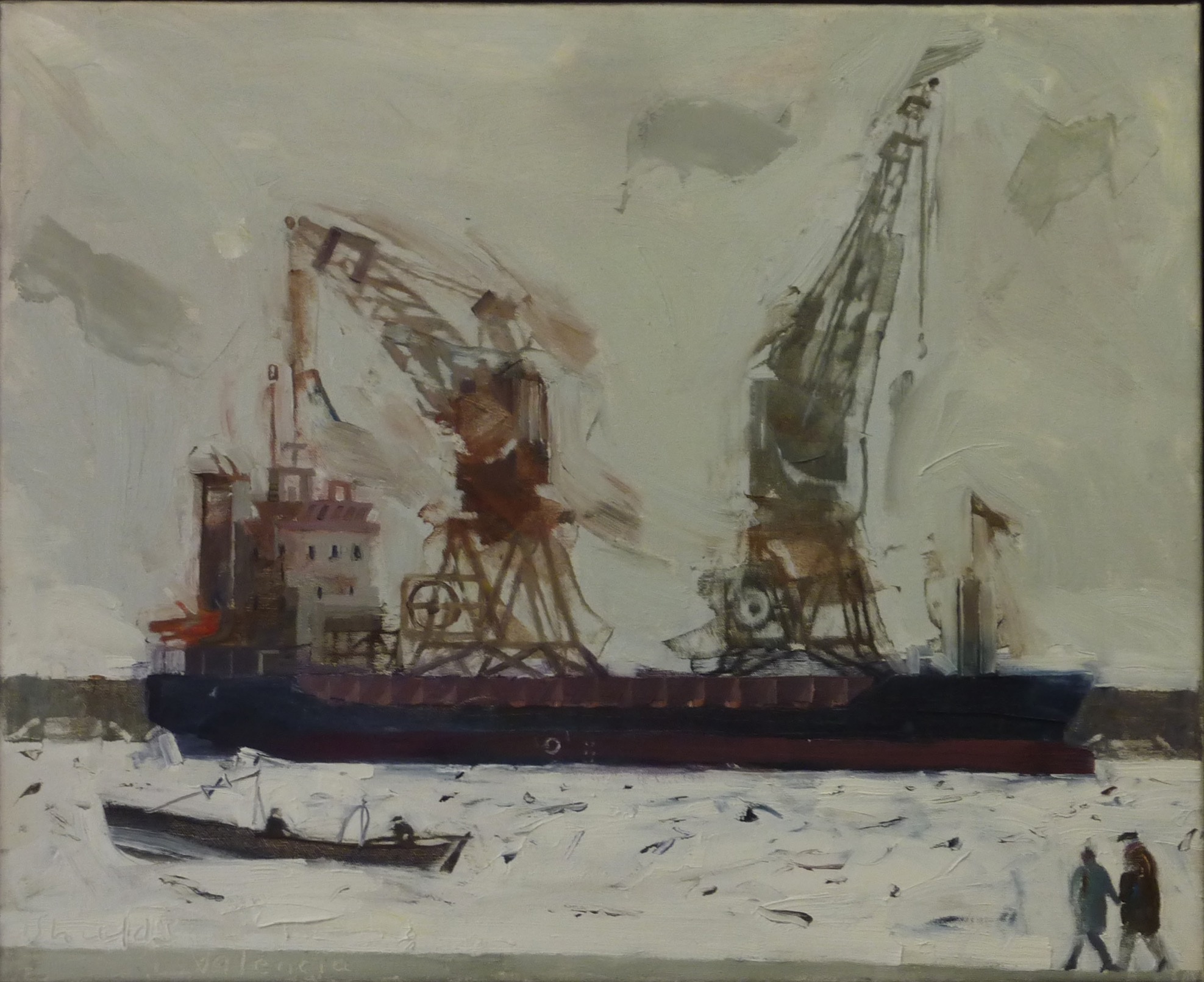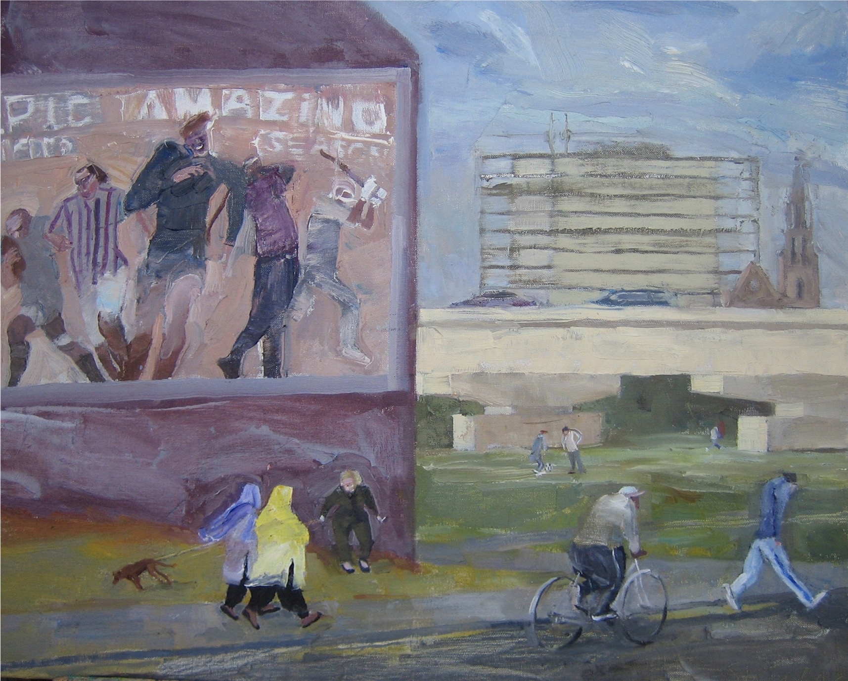 From studying music at the Royal Academy of Music in London and teaching piano while in Middlesbrough, to her successful painting career that began with her training at the Middlesbrough College of Arts, Margaret Shields has consistently led a creative life, one that has a deep understanding of the great dichotomies of our modern world. Living and working in urban environments like London and Middlesbrough before moving to her studio in Saltburn-by-the-Sea, Shields has made many different environments the subject of her paintings. From bustling urban scenes that depict a redemptive attitude to what others would term ‘urban wastelands’*., to tranquil seascapes exploring our societies relationships with the sea and its shorelines.