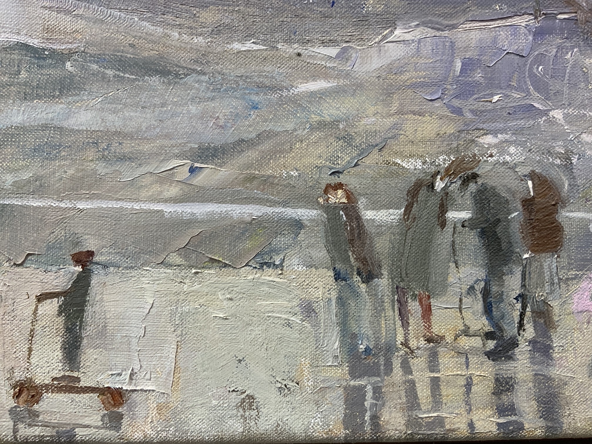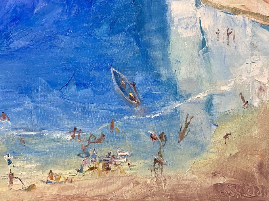 Shields’s pieces focus on the human ability to adapt to any environment. Scenes peppered with humour and vitality are the backdrop to her depiction of unchanging human nature, each brushstroke reminiscent of a wry smile. From coal gatherers and skateboarders to swimmers and dogwalkers, the human element is ever present in her landscapes, making her paintings universal in their appeal and pride of place in countless exhibitions and private collectIons.
