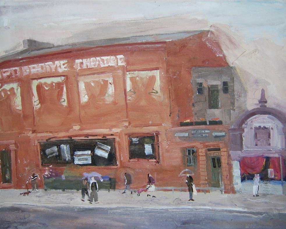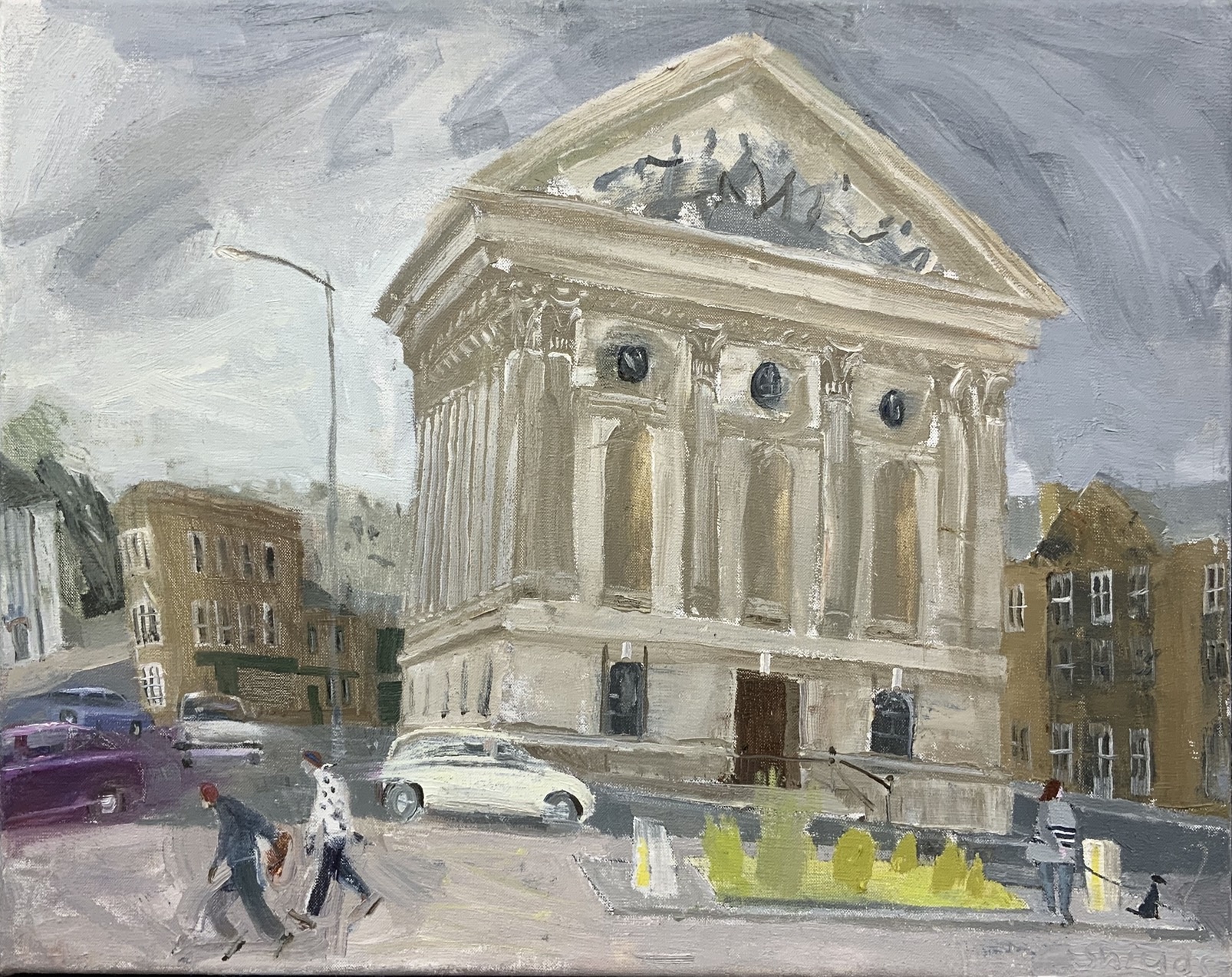 Four fine works were worth such heroic efforts, of Todmorden Town Hall, the Hipperdrome and three from Walsden. The triangles of slanting factory roof, the old temporary library, the imposing Town Hall, and warm red stone of the Theatre are all the backdrop to life in Todmorden, people going about daily comings and goings, all captured with such character and gentle humour.