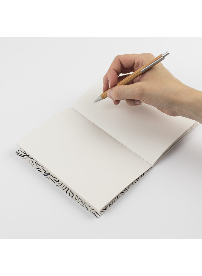 Useful and well designed plain paged notebooks in a set of 2 made with 100% recycled paper. Set features a 'cobbles' pattern developed from original lino prints and patterns on natural white covers.