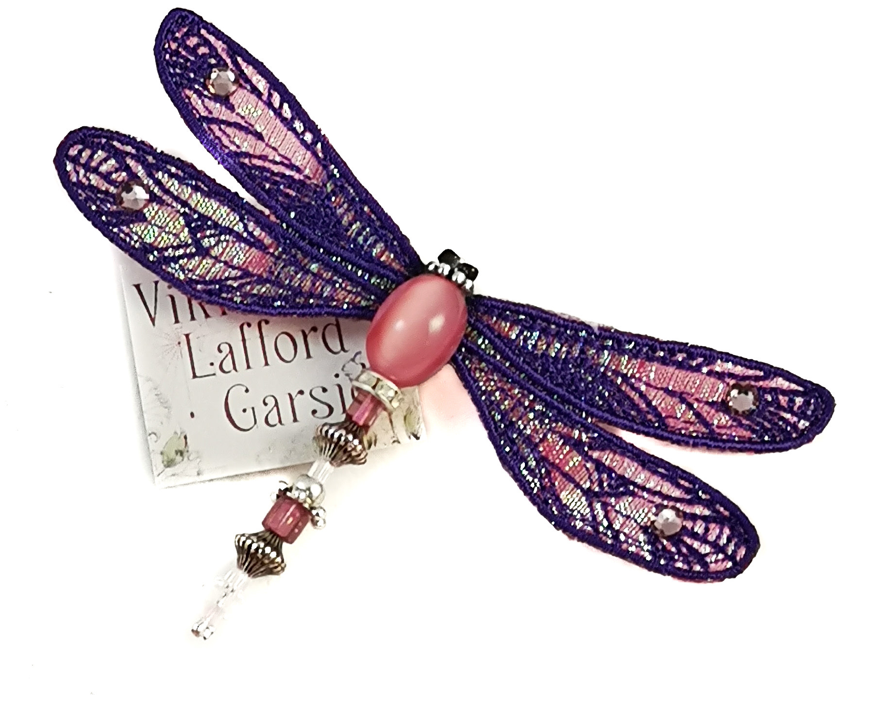 Dragonfly jewelled brooch purple & pink 082