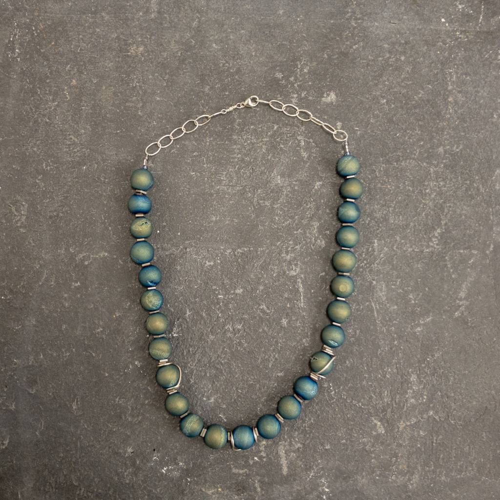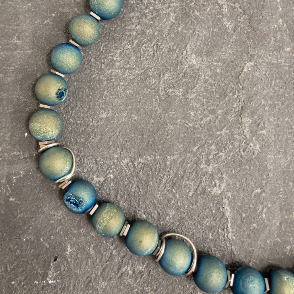 Druzy Quartz and Hematite squares Necklace