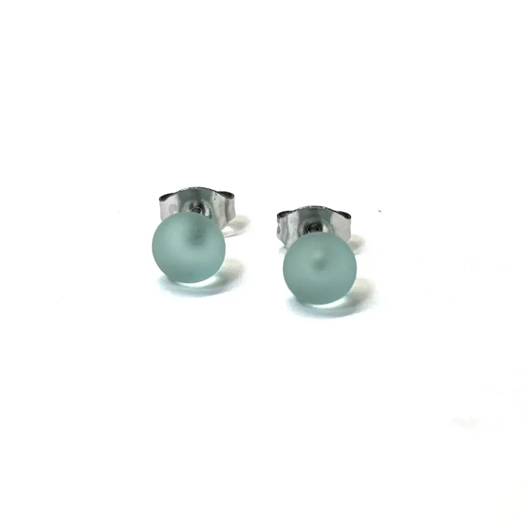 Frosted Pale Green Glass Mini Stud Earring Hand Made 98