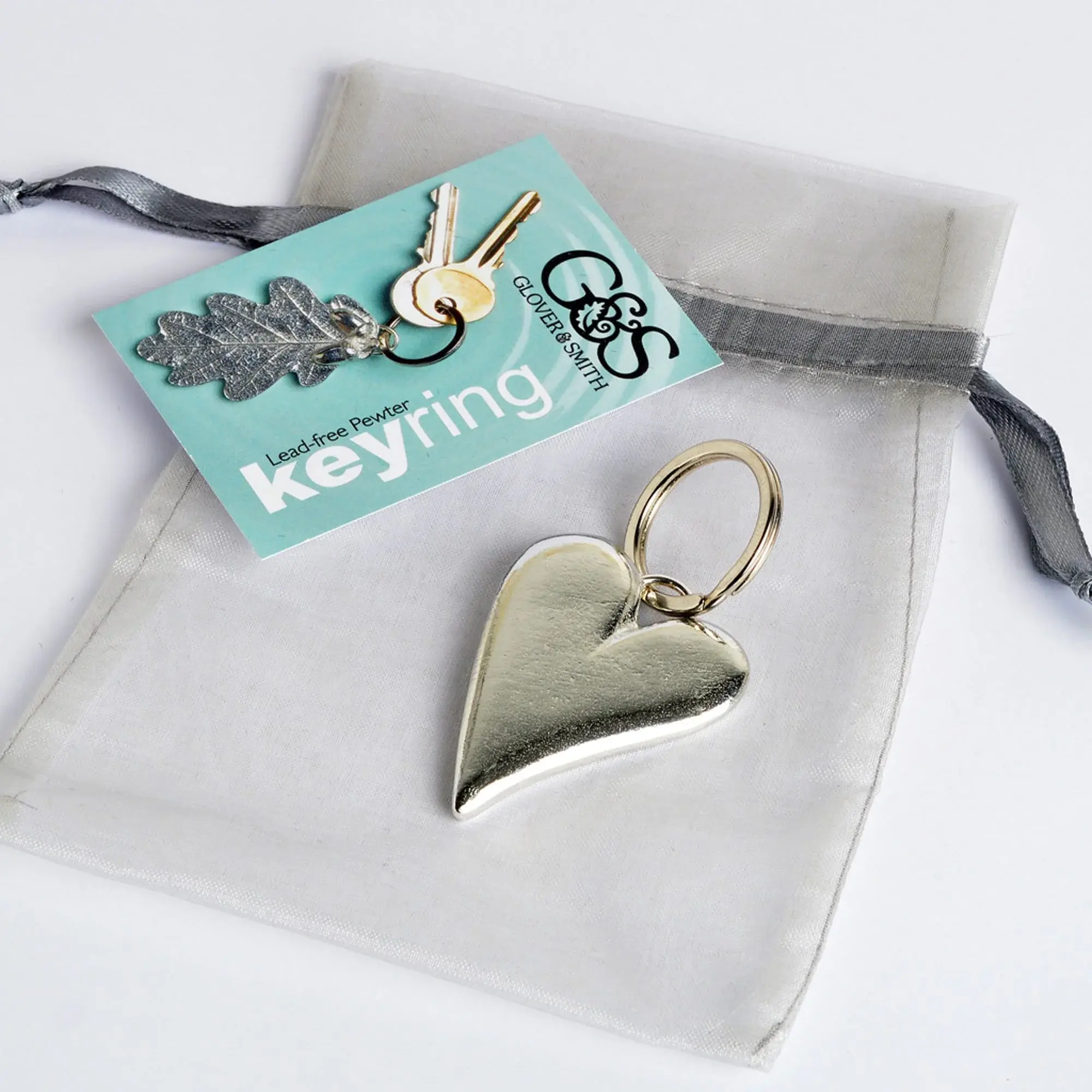 A stylish and contemporary pewter heart on a stainless steel key ring. Perfect gifts for newly-weds or new home owners. The Heart shaped keychain could also be a small gift to commemorate a 10 year (tin) anniversary, (Our pewter is 95% tin). Also a perfect Valentine or housewarming gift.