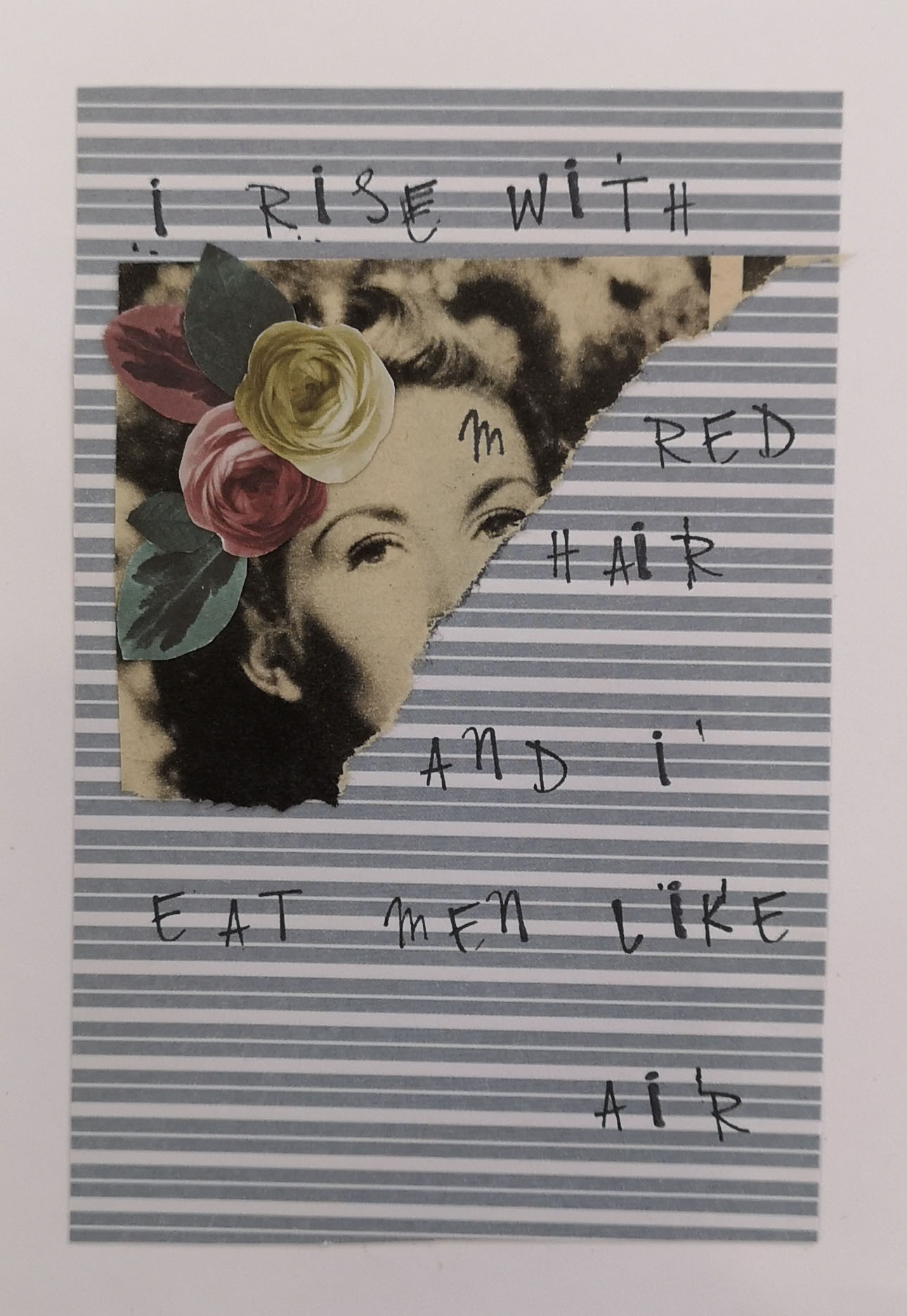 This series of work is inspired by the works of Sylvia Plat. Using found images of women from vintage magazines, where their image was publicised enforcing stereotypical views of women during that period, I have broke apart the images with quotes from Plath's "Ariel" poetry book which expands on feminist ideals.