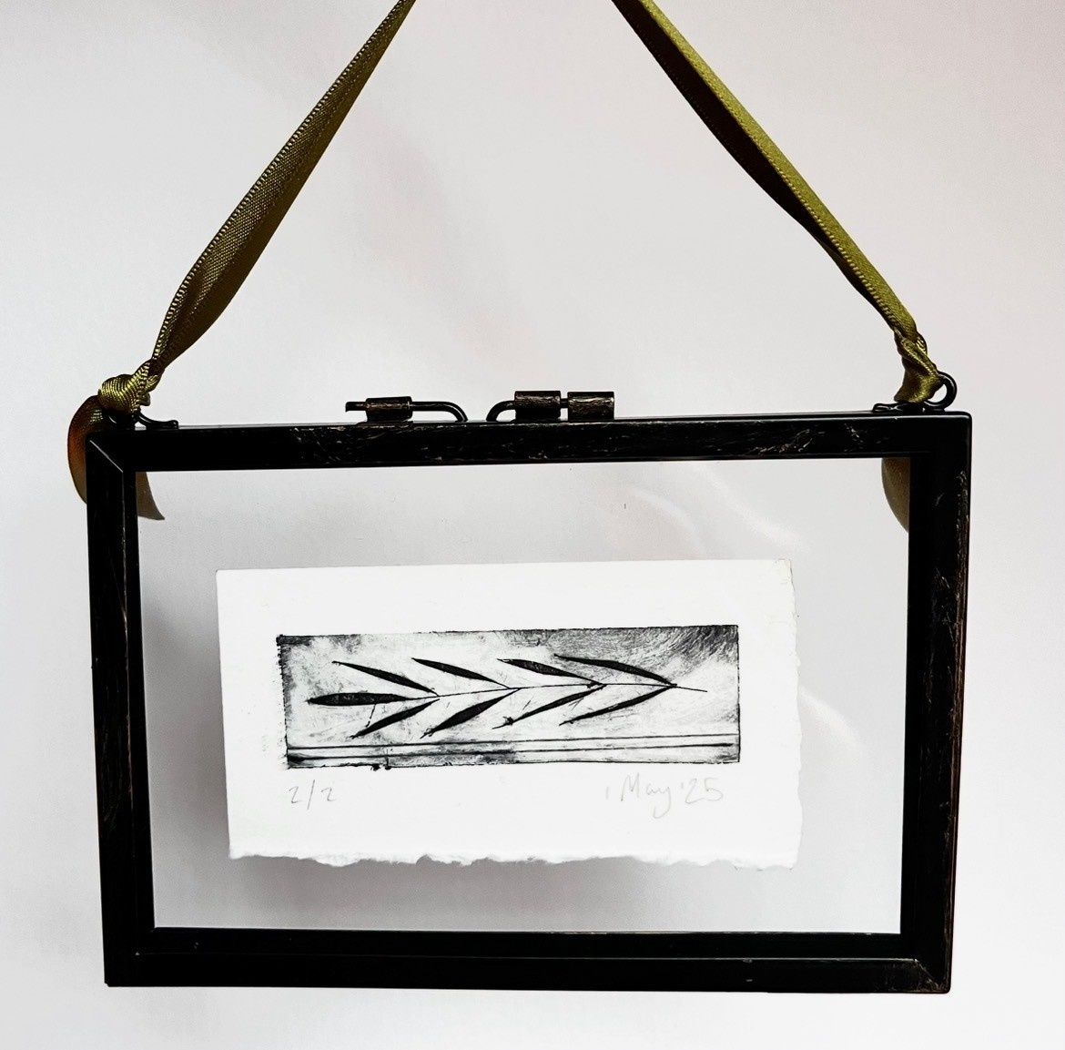 Leafy Drypoint in hanging glass frame2/2