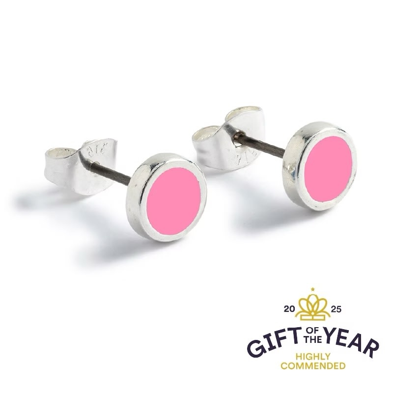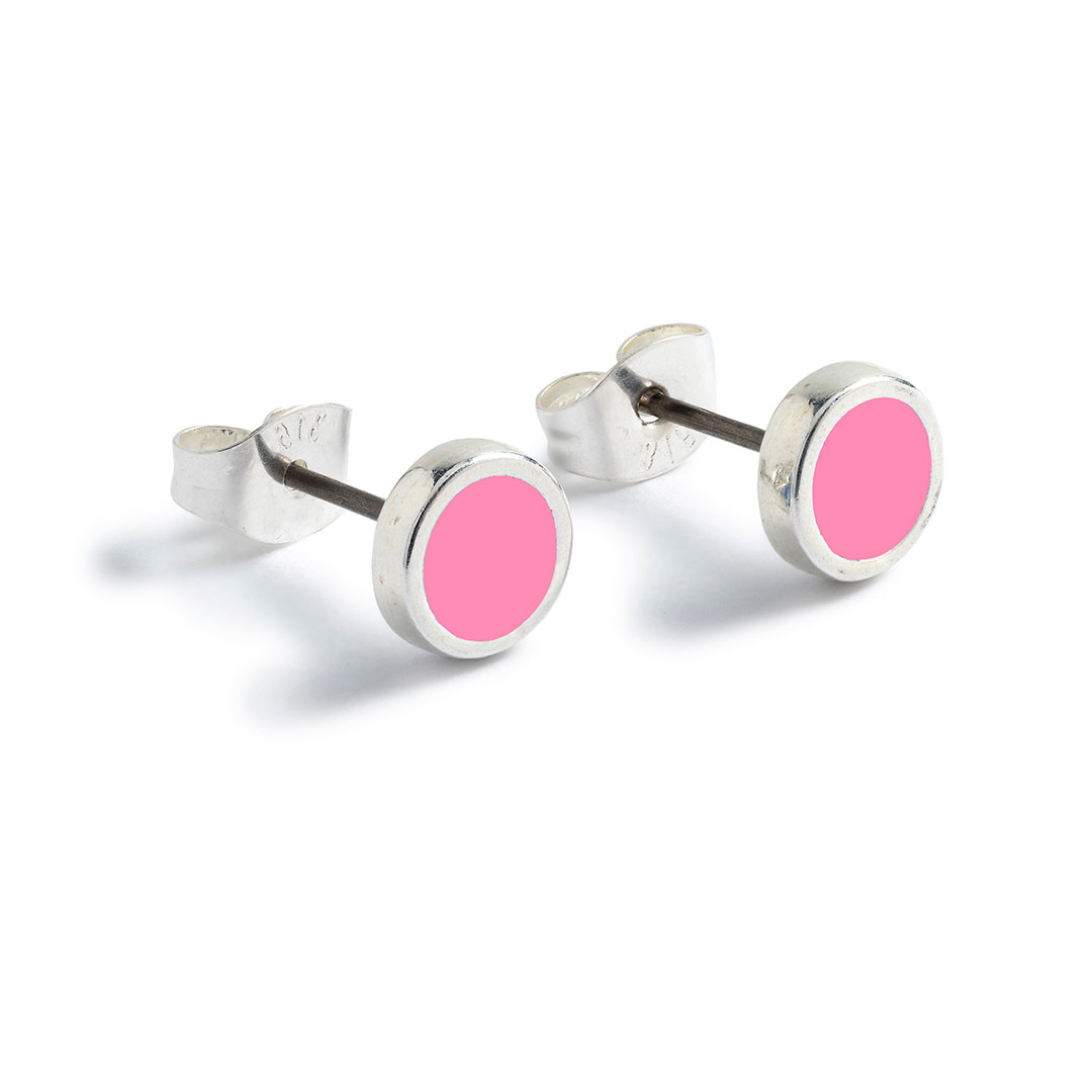 Light Pink Silver & Enamel Round Stud Earrings 090
