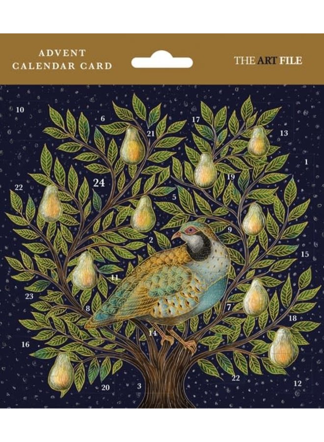 Partridge in a Pear Tree Guilded Advent calendar card by Catherine Rowe