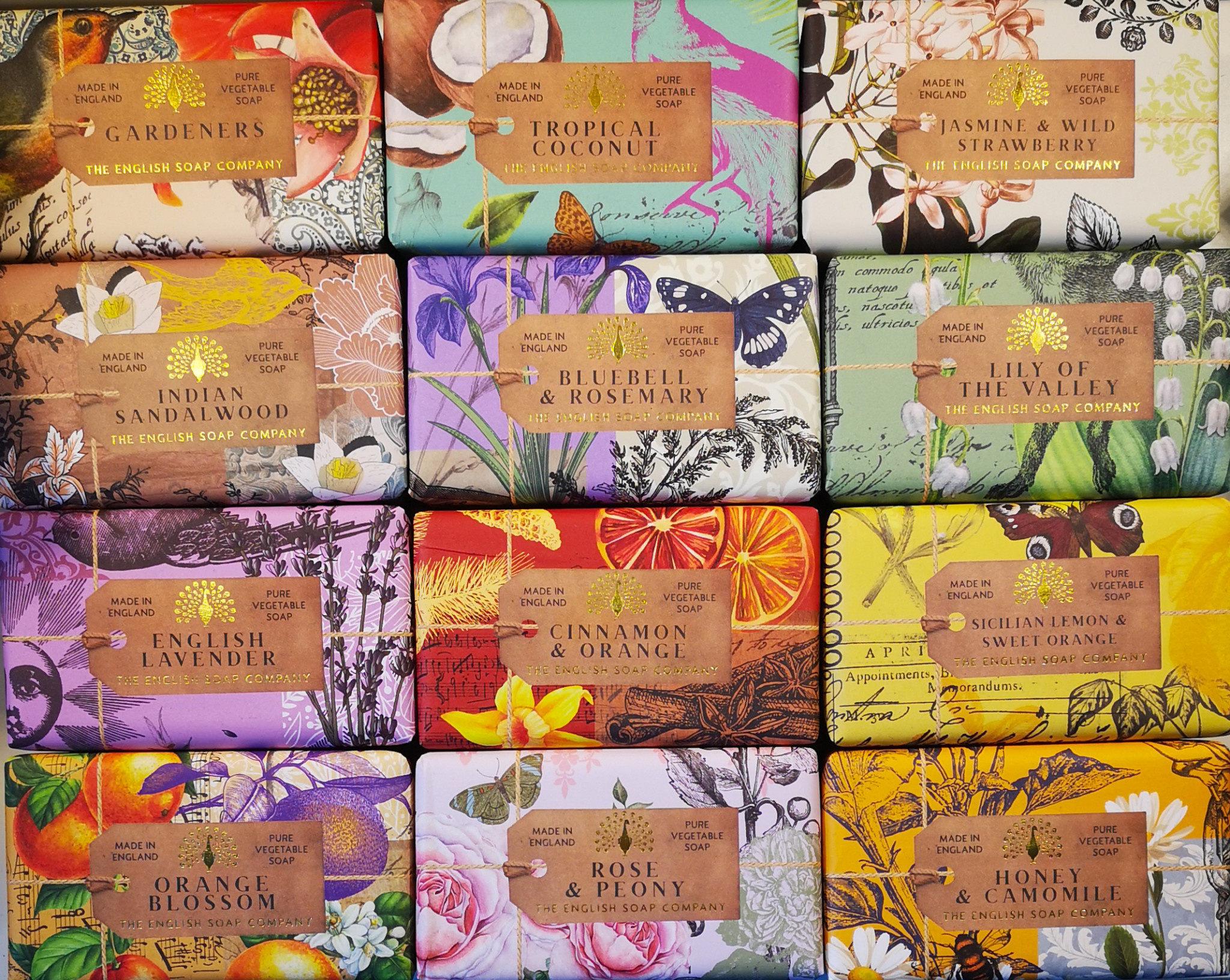 A Sicilian Lemon and Sweet Orange soap bar, from the Anniversary Collection. This moisturising shea butter soap is perfumed with zesty lemon and fresh floral rose petal notes. This fragrance is rich with a base of dry amber, sweet orange and musk. Wrapped in beautifully illustrated, fully recyclable packaging.