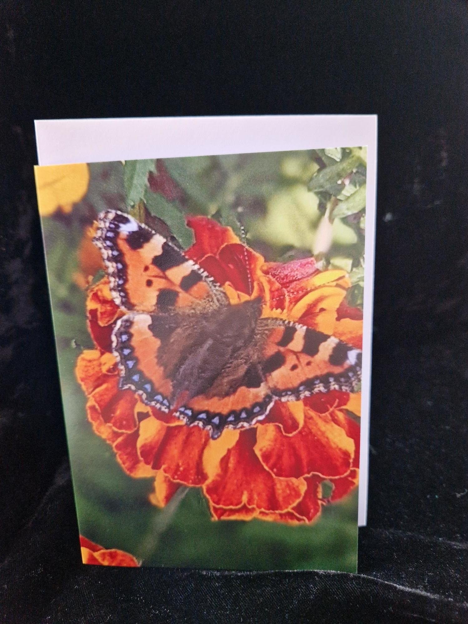 Small Tortoiseshell on Marigold Photo Art Card by Sue Wardell 09