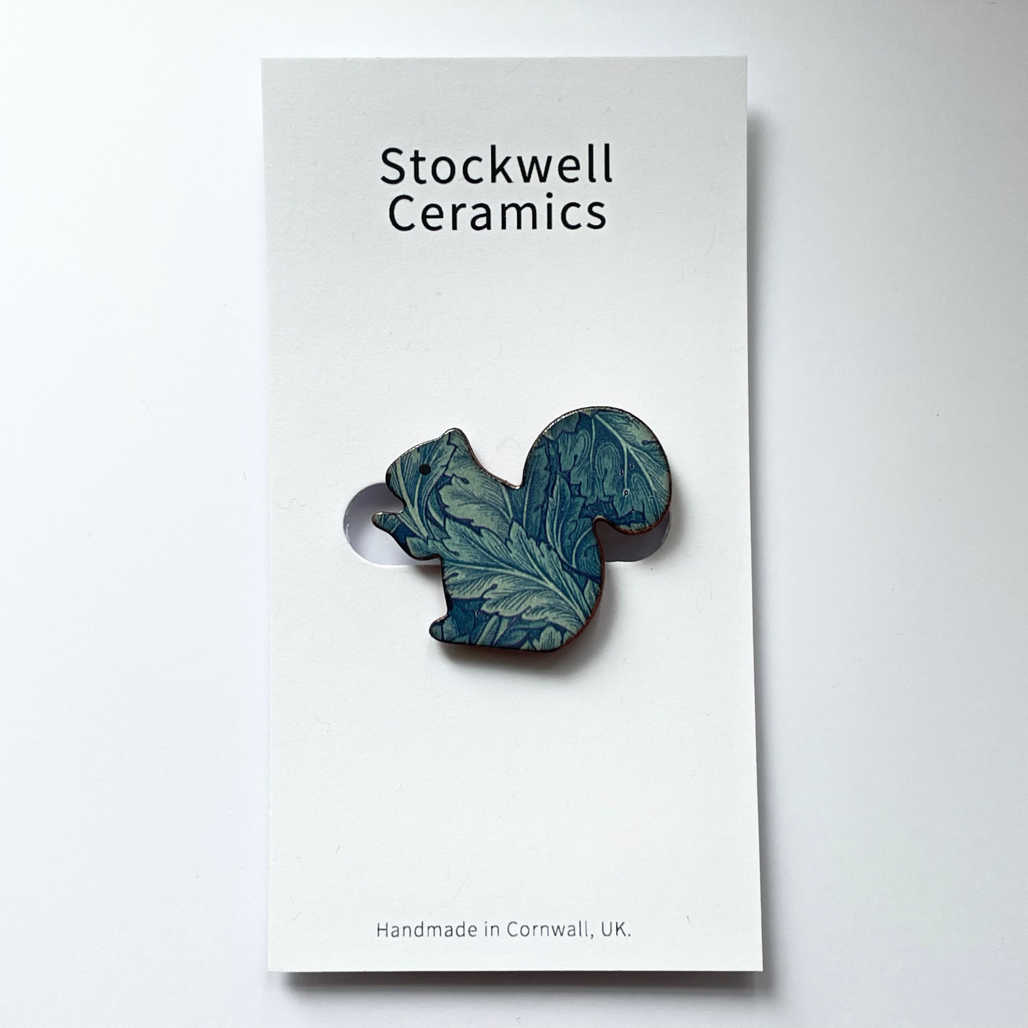 Squirrel Blue Floral Patterned Ceramic Brooch 070
