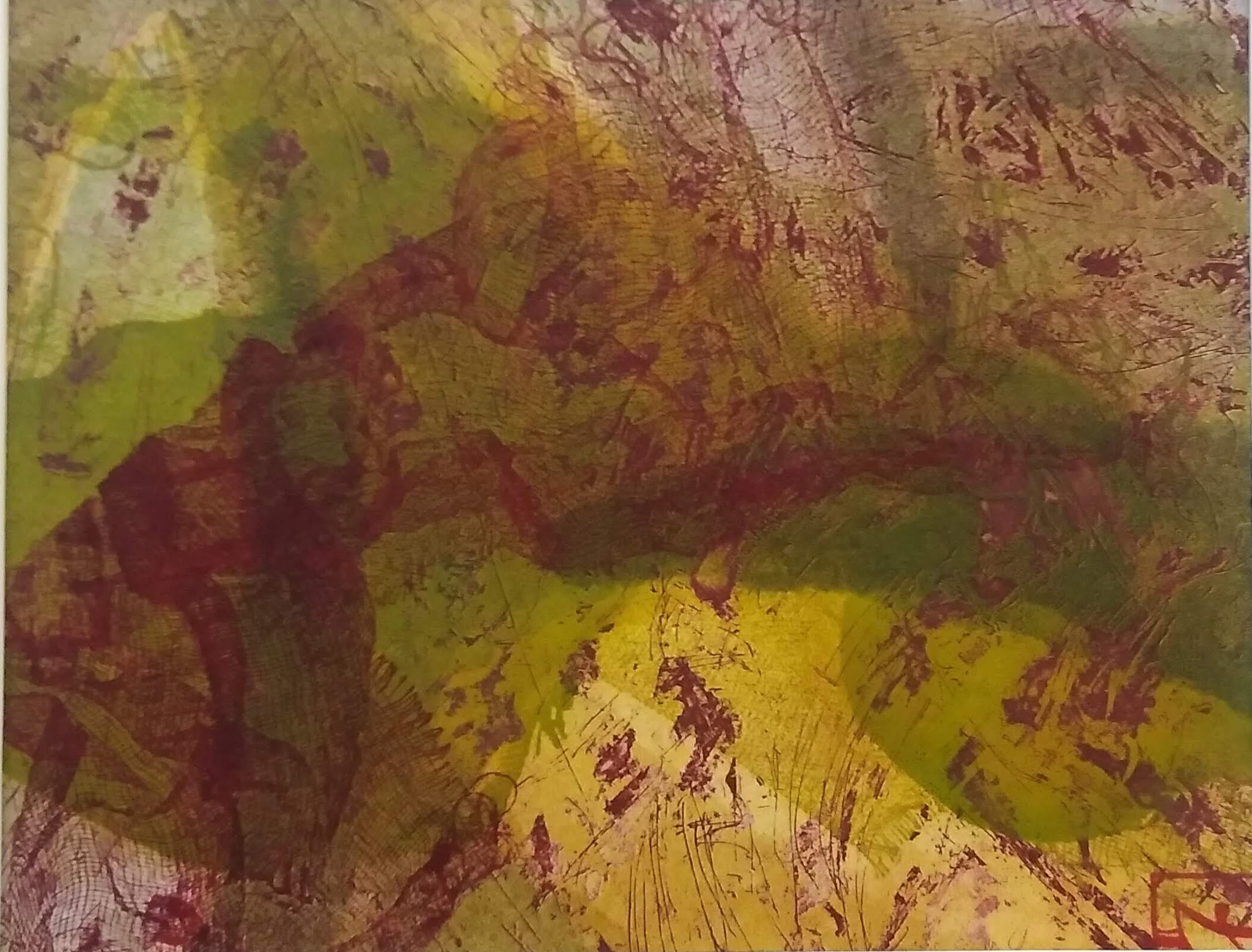 “I have an abstract approach to art often combining several printmaking processes. I create the image using line, colour and texture and layering colour. My approach is an emotional response and imaginery. I sometimes use heightened colour in the prints depending on the mood of the subject matter”