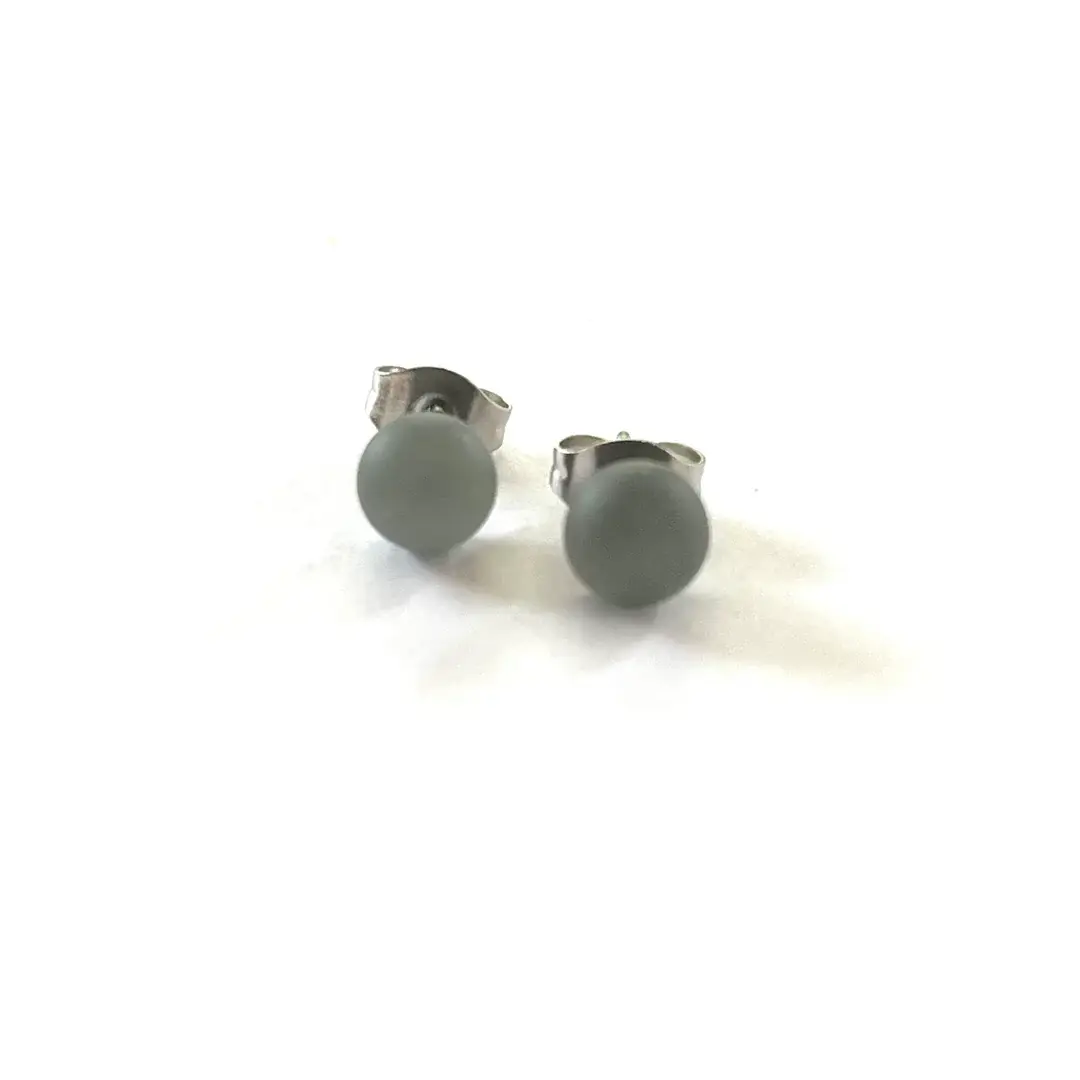 Mini aretes de botón de vidrio grafito esmerilado hechos a mano 104