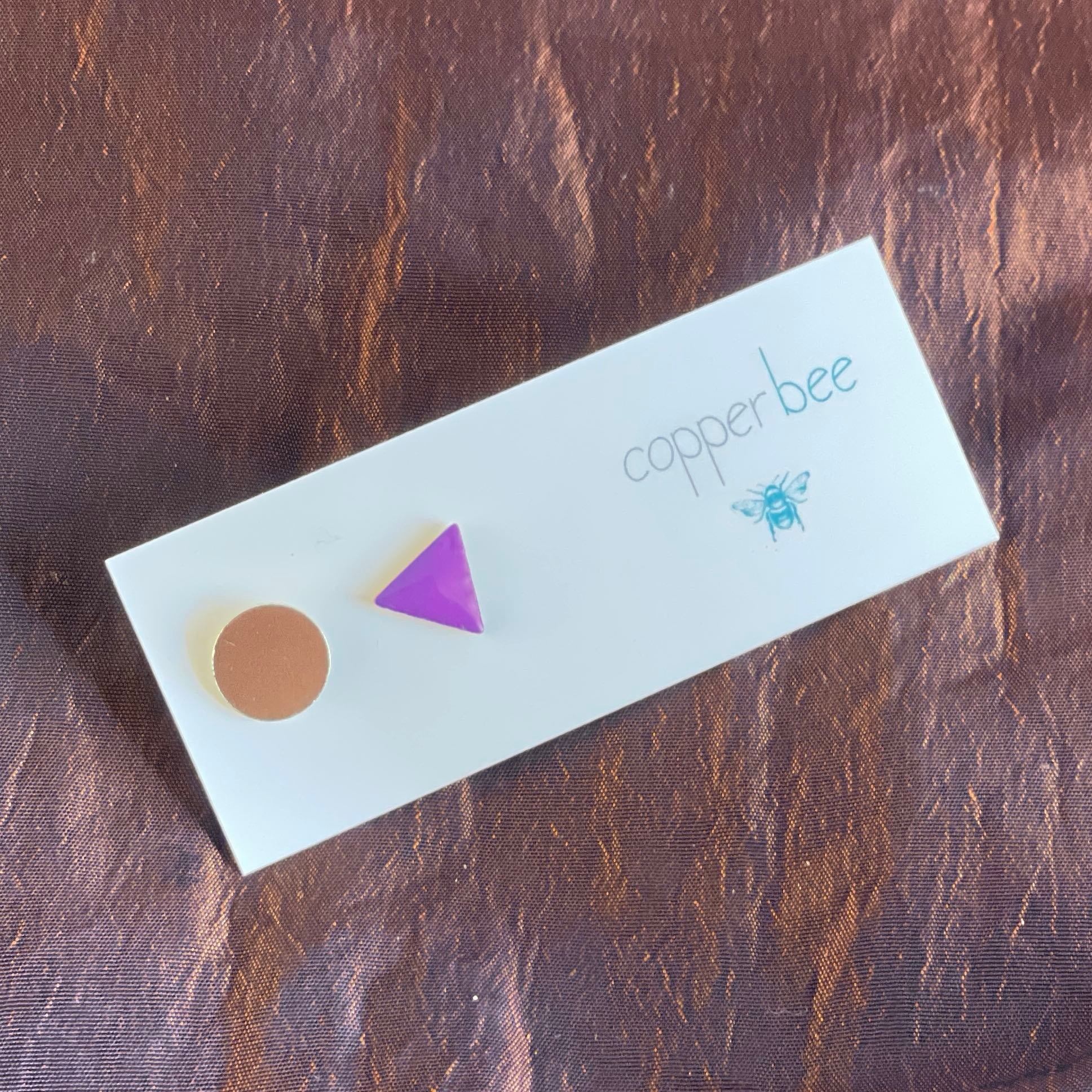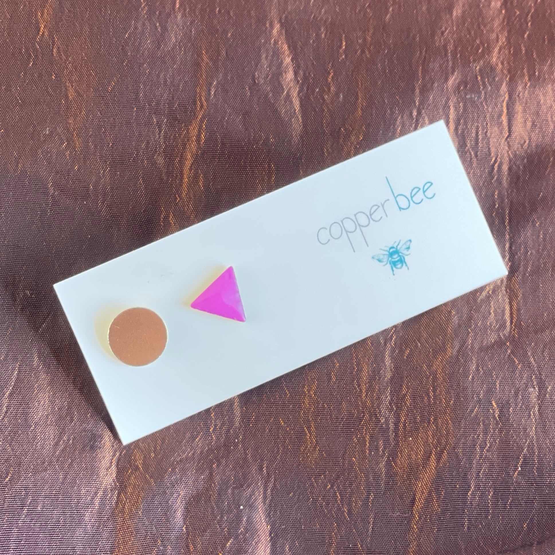 Boucles d'oreilles géométriques dépareillées émail/laiton 52