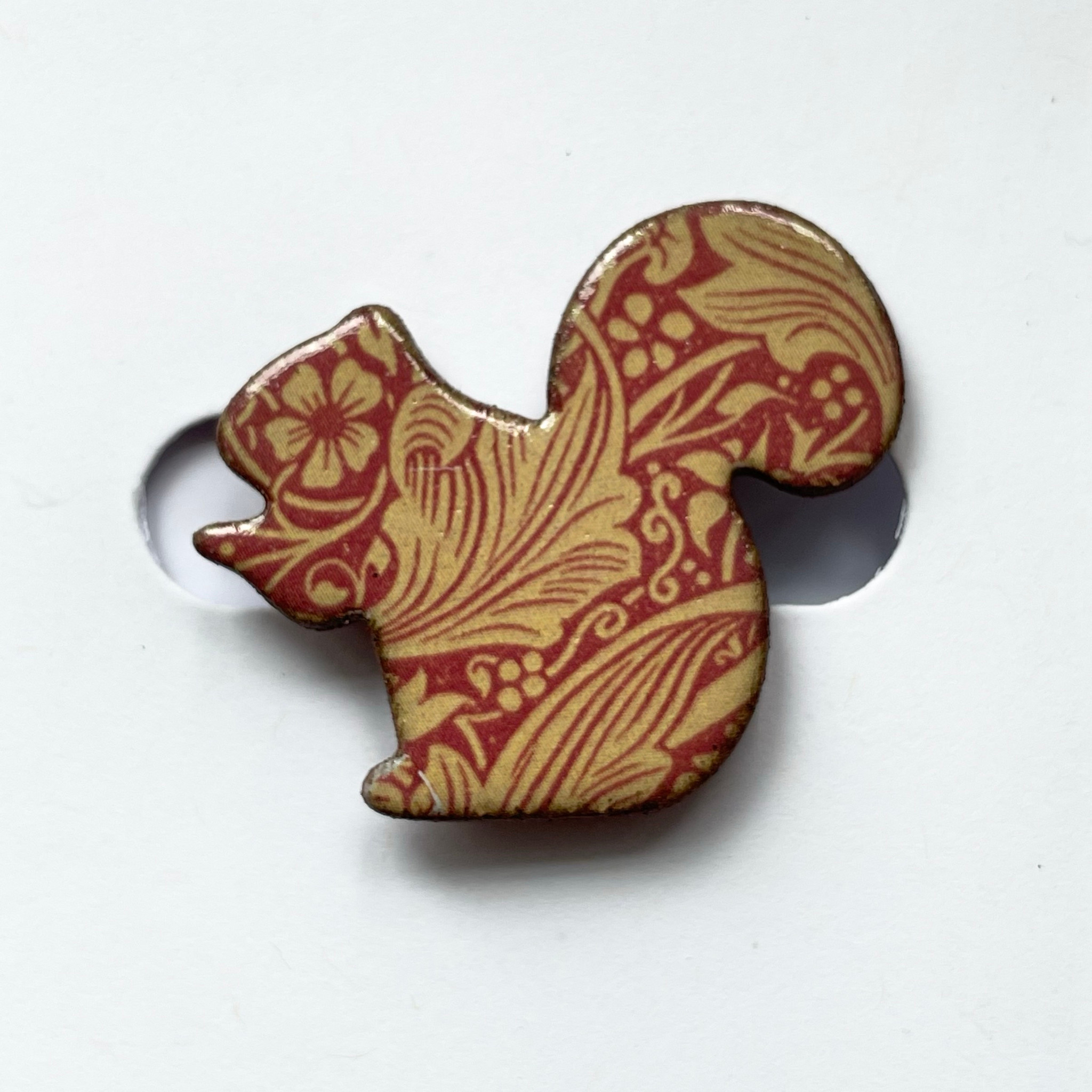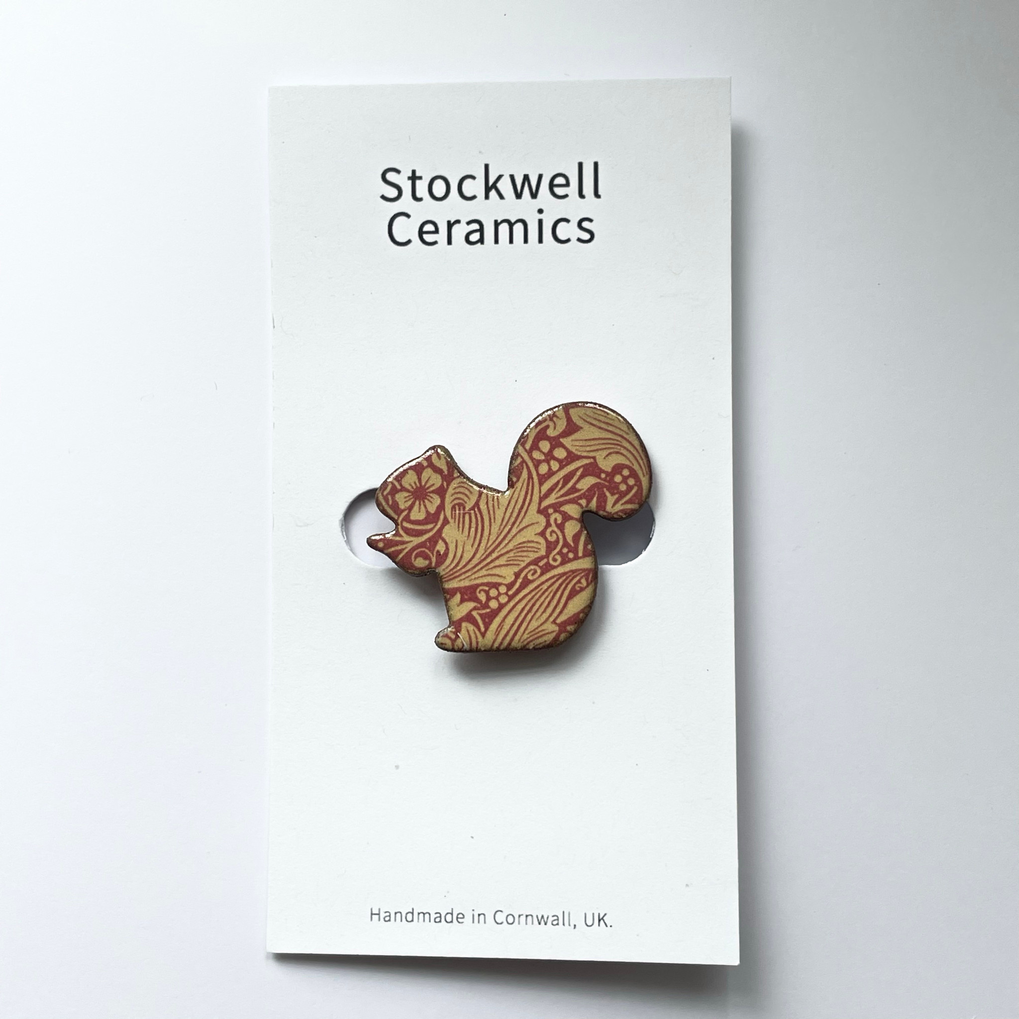 Squirrel Red Floral Patterned Ceramic Brooch 071