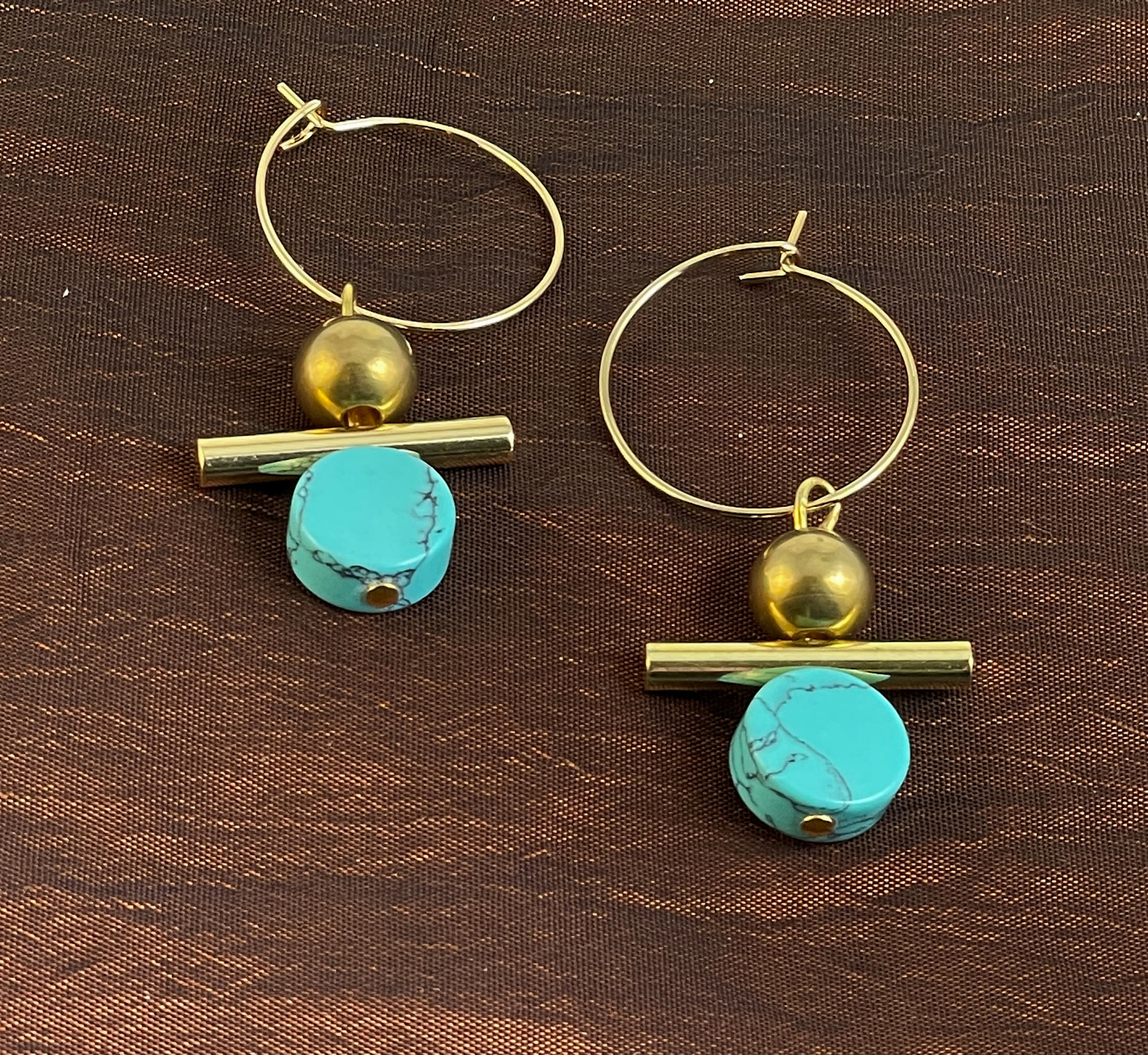 Boucles d'oreilles Totem Turquoise + Laiton 73