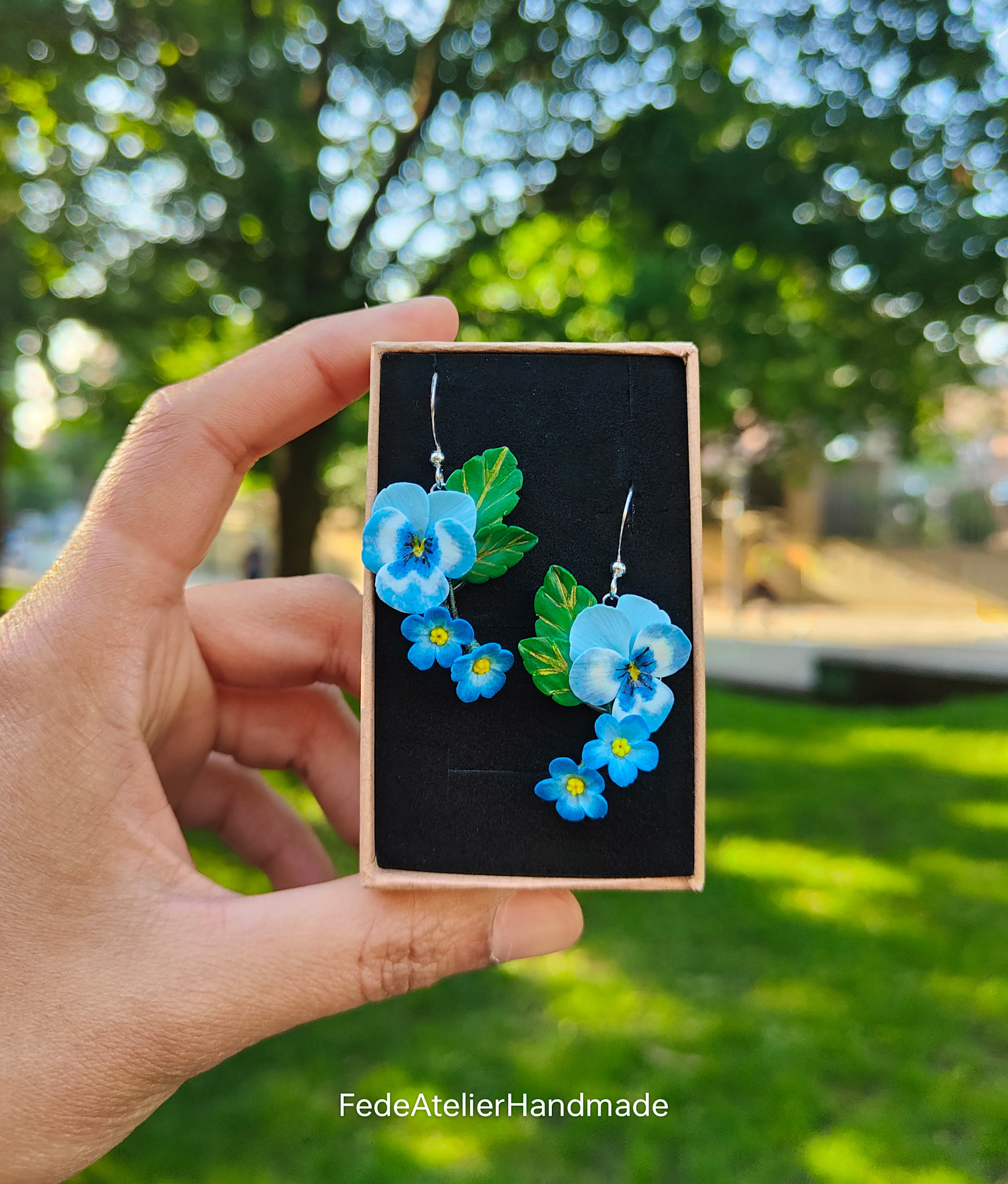 Boucles d'oreilles pendantes Viola et Myosotis 18