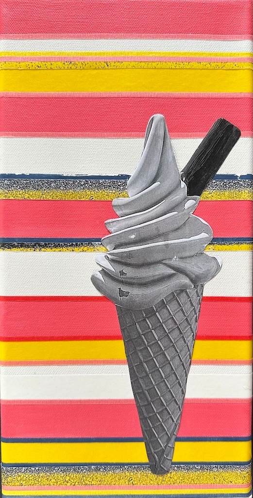 Серьги-гвоздики с черным геометрическим узором и красной полосой 42