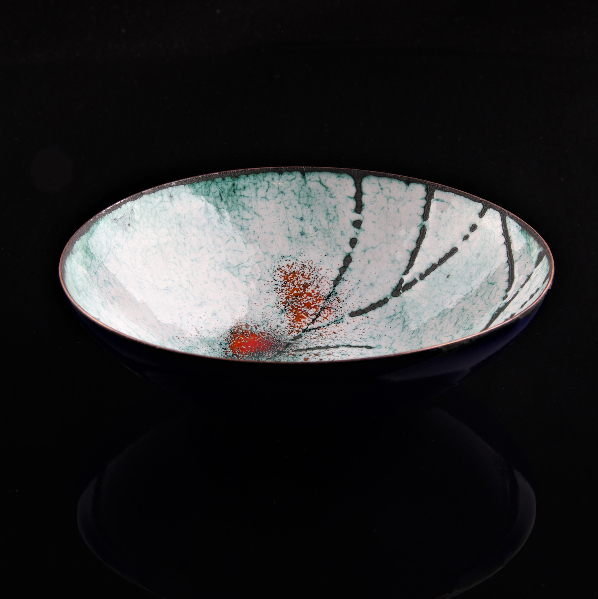 Бирюзовая и белая эмалевая медная чаша с рисунком дерева 011