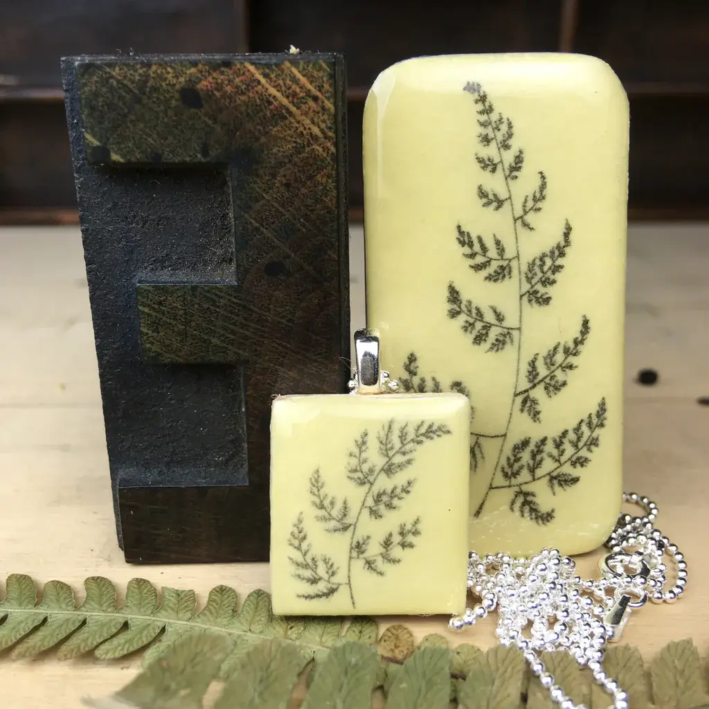 Fern Scrabble I Tile Pendant and Tiny Tin 93