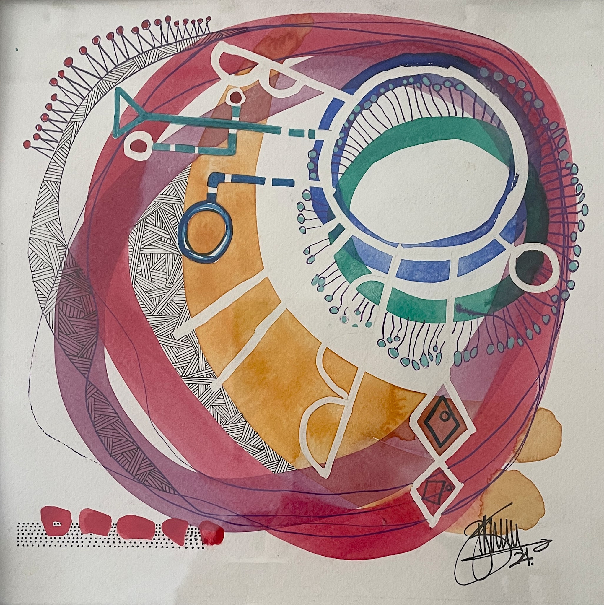 En meditation över livets cirklar, stjärnor och uråldriga runor i livfulla färger.