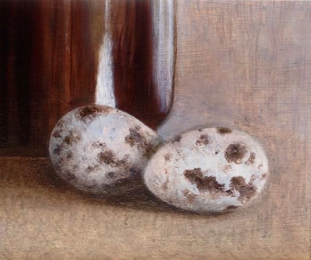 Mitt senaste arbete fokuserar på stilleben - med traditionella målningsmetoder i oljor. Bekanta föremål är grupperade tillsammans och sitter tyst i sitt tilldelade utrymme. Genom att isolera några objekt åt gången är det möjligt att granska dem på samma sätt som man kan se på ett ansikte i porträtt. Jag är intresserad av mer än en enkel likhet av saker - jag vill fånga en integritet - ett varelse där.